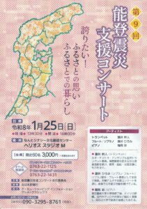 【コンサート情報】2025年06月15日 2025 6/11 コンサート 2025年6月11日2025年9月2日 帰真慶讃法要 能登半島地震支援コンサート 日時:2025年5月15日13:30開始 会場:善興寺本堂(高岡市中田4500-1) 出演:仲谷響子(声楽)、仲谷美千代(ピアノ)、岡本えり子(フルート) コンサート 【入荷情報】ヤマハU5ASが入荷しました。 【News】ヤマハからのお知らせ 関連記事 【コンサート情報】2026年01月25日 2026年1月5日 【コンサート情報】2025年11月27日 2025年10月31日 【コンサート情報】2025年09月07日 2025年9月2日 【コンサート情報】2025年01月04日 2024年12月27日 【コンサート情報】2024年11月14日 2024年9月19日 【コンサート情報】2024年5月02日 2024年4月29日 【コンサート情報】2024年4月20日 2024年3月31日 【コンサート情報】2024年4月19日 2024年3月31日